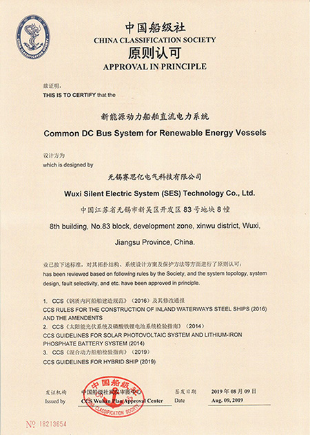 直流組網(wǎng)技術(shù)獲得中國船級(jí)社新能源動(dòng)力原則認(rèn)可證書和中國船級(jí)社電力推進(jìn)系統(tǒng)設(shè)計(jì)認(rèn)可證明文件。